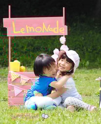 ガーデンのとても綺麗な芝生に映えるSweetyhomeのスタンドブース【Pink Lemonade】ピンクレモネードを