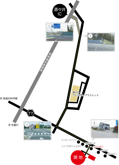 酒々井・八街IC下車後は左の地図をご利用頂きますのが最も簡単なルートです。