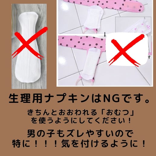 (生理用ナプキンの仕様は禁止となります。理由はおしっこが漏れてしまうので。)