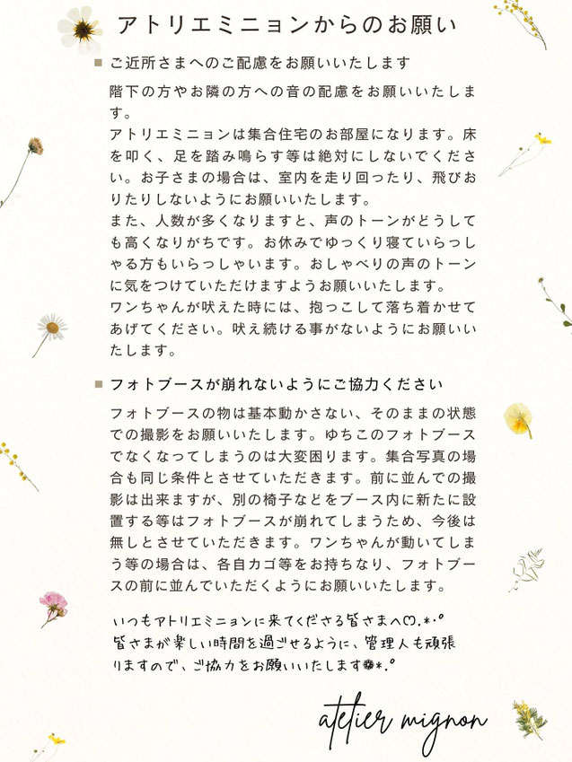 <<アトリエミニョンにご来場の皆様へ>>