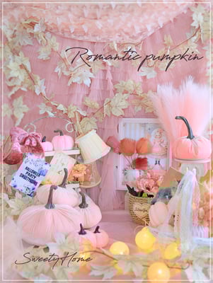 ハロウィンにちなんだピンクベージュのカボチャのブース。テーブル上のブースです。